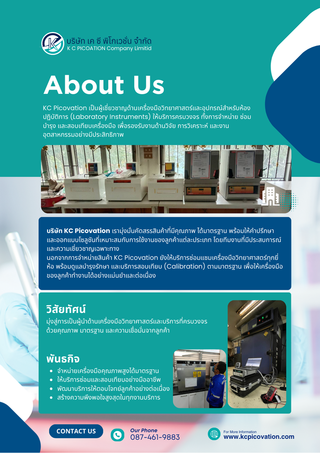 ก่อตั้งโดยทีมวิศวกรผู้เชี่ยวชาญจากบริษัทชั้นนำในประเทศไทย ซึ่งมีประสบการณ์มากกว่า 10 ปี ให้บริการซ่อมบำรุงเครื่องมือวิทยาศาสตร์และเครื่องมือวัดทุกประเภท เช่น